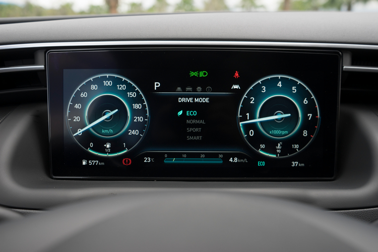 且螢幕導入防眩光塗層技術,在試駕過程中也確認就算沒有遮光罩,在光線不同的照射情況下反光情形都得到很好的抑制,不會影響到畫面的閱讀。圖形與文字的設定也易讀易懂。在不同駕駛模式下會有不同的風格(色調)呈現,不過並沒有與中控台多媒體主機連動,所以導航畫面並不會出現在數位儀錶上。