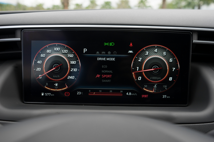 特別是在低速域加速的時候,由於Tucson L在1500rpm左右峰值扭力就已開始輸出,加速表現會比其他對手要好許一些,更別說對手之中搭載CVT變速箱的車款,在扭力拉升的反應與速度上就更難與之匹敵。