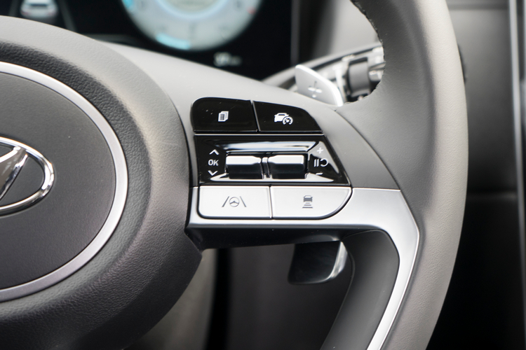 在中央鞍座上,之前試駕Kona Electric所見到的按鍵式電傳線控排檔介面又出現了,用大大的按鍵來取代傳統排檔桿雖然讓駕駛者少了幾分「掌控感」,很像在控制3C產品。但操作上好懂就手,且前座中央肘枕的高度讓駕駛者在手肘靠著肘枕操作時格外舒適,應該會逐漸普遍化於品牌旗下各車款之上。