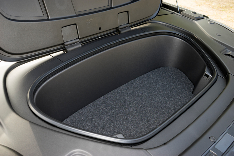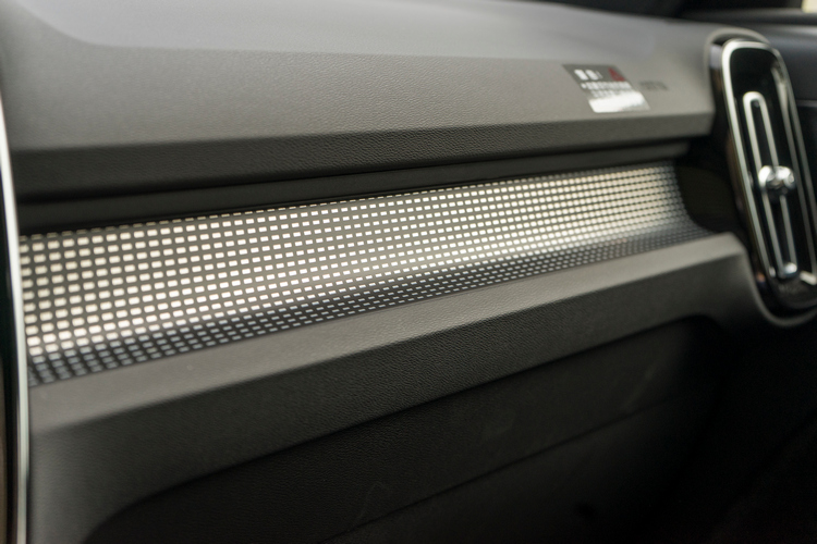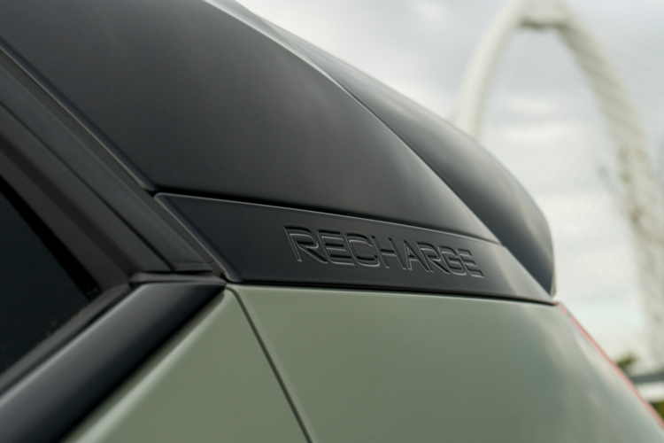 XC40 Recharge與汽油車型外觀上的差別,先從車身尺碼來看,車身軸距與車身長寬都是一樣,但1647mm的車高則比汽油車型的1658mm略低一些,比較明顯的差異則是在車身距地高度部分Recharge的176mm要比汽油車型的211mm降低了達35mm,對於降低車身重心提升操控表現及風阻等方面都有好處。 車頭「水箱罩」的位置因為電動車的散熱需求不高所以放上一片空氣力學飾板以利高速時降低風阻,只留下了一點空間來進氣散熱。在亮黑色車頂後方C柱處可以看到「Recharge」字樣(雖然有些低調不明顯,路過的人車應該沒法一眼就察覺),車尾也有專屬銘牌來表明其P8頂規(雙馬達)高性能電動車的身分。