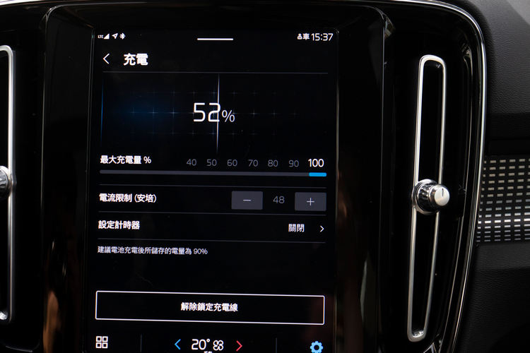 更值得注意的則是在100km/h左右的中段加速能力它的表現就很符合大家對電動車的期待,迅速重踩油門之下雖然一開始爆發力/貼背感沒有大馬力渦輪引擎車那麼猛爆,但加速力道不斷隨著車速持續增加的特質會也相當痛快。 而在減速電能回充上,與近來不少電動車透過方向盤撥片調整回充程度的做法不同。XC40 Recharge只有「One Pedal Drive」開與關的設定,不能調程度(關閉時的回充電力極小)。開啟這功能的話一收油門就立即減速(回充),且減速程度達到約0.3G,是不小的減速力道。如果你能適應且善用的話,就可以減少使用踩煞車踏板頻率甚至不踩煞車(可讓車子完全靜止),達到所謂的「單踏板駕駛」。但老實說要習慣「含著油門」讓車輛滑行並不是那麼容易,還真要花點時間去適應。但話說回來,如果你夠熟練,那麼這功能對山路激烈操駕或高速道路的切換車道穿梭來說相當有幫助。