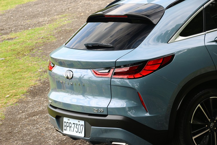 外型上,QX55在B柱之前與QX50相似,車頭採用「日藝摺紙格柵」,以日本摺紙藝術為啟發,交錯堆疊出優雅網格,搭配雙弓式水箱護罩造型,營造出絕美日系風格。車側線條簡約卻有很多細節,陽光照射下呈現出豐富層次感;從B柱之後,車頂向下傾斜呈現出跑車動感,搭配上20吋超大尺寸鋁圈,就算車輛不動也展現出跑格的震撼。尾燈造型與QX50如出一轍,以45顆高品質LED投射科技與琴鍵設計融合成獨特線條,用科技美學造就日式工藝極究奢華,不單單只有帥氣的跑車風格。