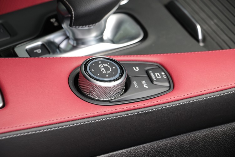 進到車內,造型與QX50相同,由於先前有試駕過QX50,整體操作介面相當熟悉。首先中控台最醒目就是雙螢幕的配置,上層螢幕主要提供衛星導航與車外環景以及支援Apple CarPlay影音系統,下方的螢幕是主要是 Infiniti InTouch影音功能切換介面,選單能調整冷氣、音響、行車模式等功能。此外,專屬 QX55 座艙設計的 16 具 BOSE Performance 揚聲器,每具揚聲器都分配在最佳位置,有如親臨演奏現場般的聽覺饗宴。
