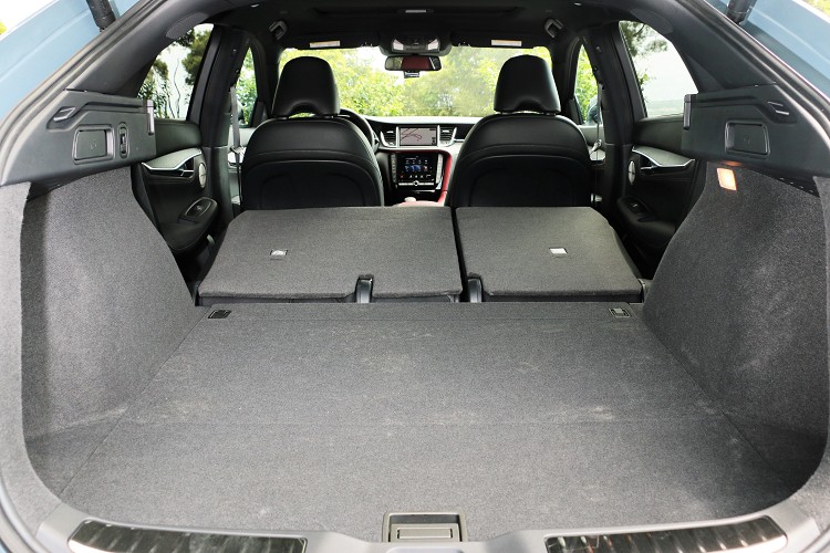 跑格休旅的流線車身最擔心壓縮倒車室空間,QX55在動感、流線的跑格外觀下,仍保有充足且舒適的乘坐空間,後座採用前後可滑移15公分座椅,搭配10段可調傾斜角度椅背,提供乘坐者舒適與靈活的乘坐空間。後座椅背傾倒後,行李廂空間最大更可擴展至 1,531公升,滿足生活各種需求的載物表現。