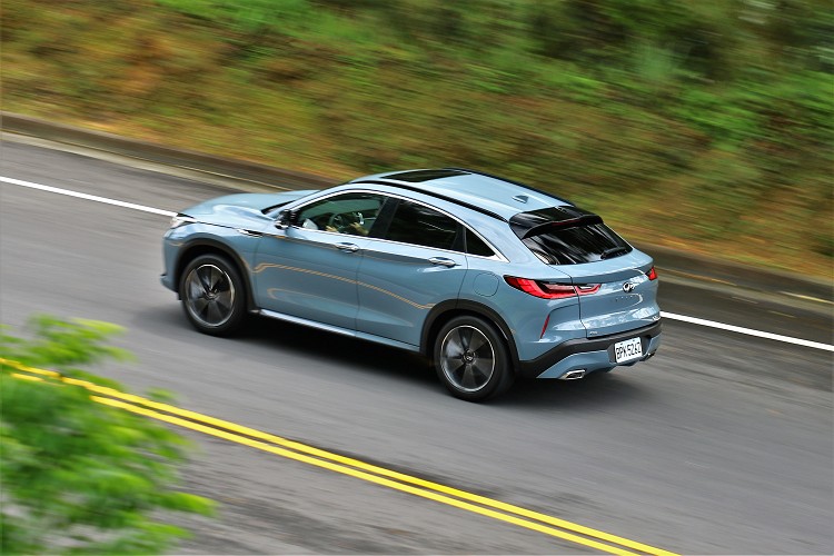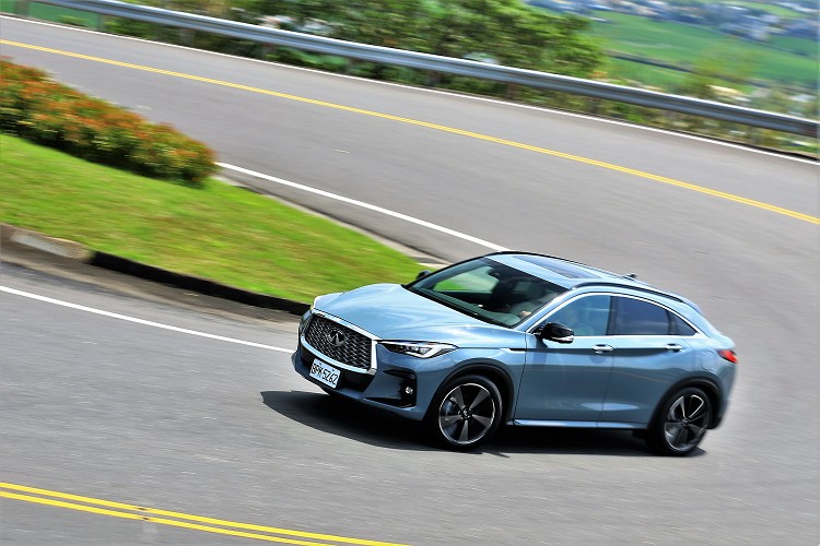 底盤設定在QX50基礎下,進行運動化調校,且增加運動化防傾桿,實際山路上試駕,可明顯感受到車身動態的沉穩,在多彎山路避震器支撐性不錯,不會因為速度過快的進彎而軟腳,適度的側傾有助於輪胎發揮它最大效益。搭配智慧四輪傳動系統,乾燥路面以前輪驅動模式提升燃油效率,於濕滑、彎道或崎嶇路面,系統自動傳遞最高達50%的動力至後輪,增加車輪抓地力,也能增加高速時的穩定感,整體的駕馭風格完全符合它跑格定位。