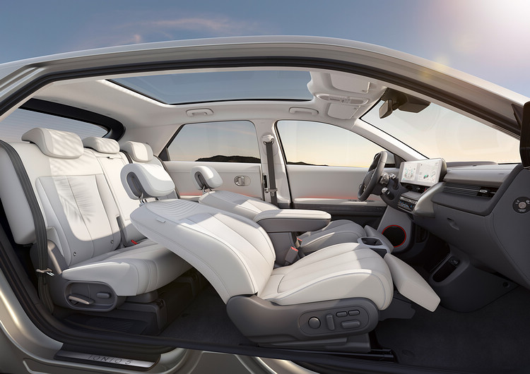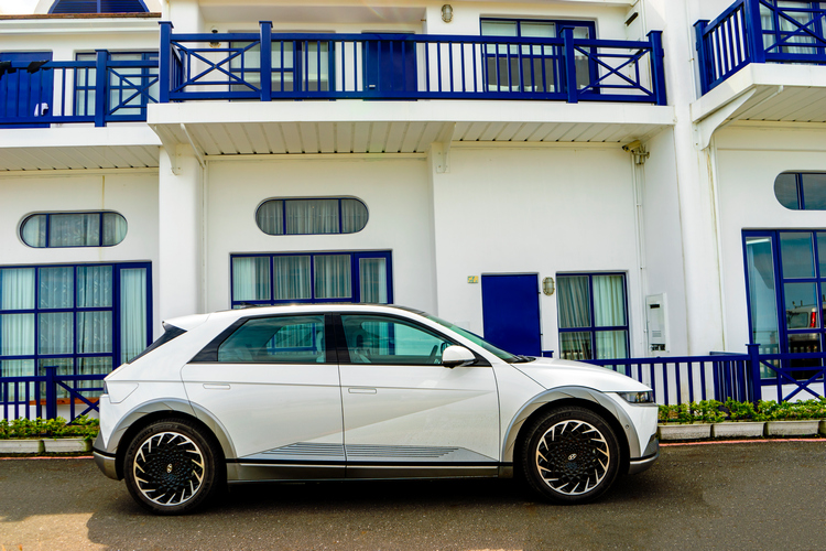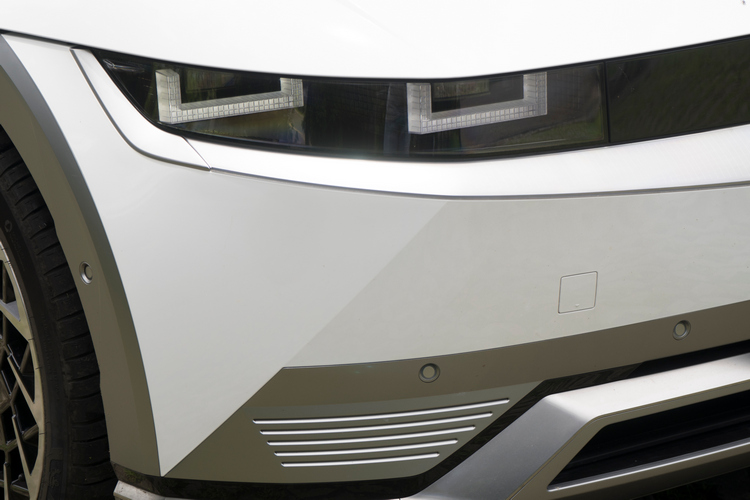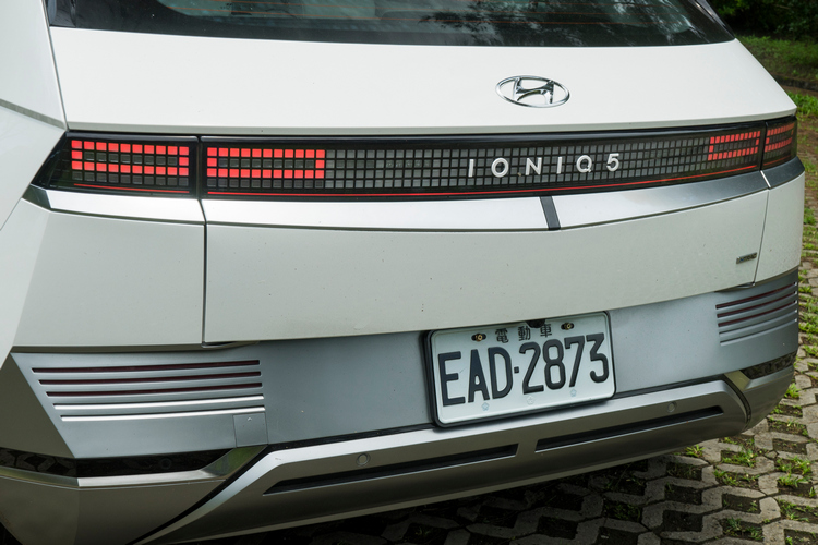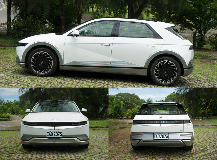 從車身尺碼來看,IONIQ 5 4635mm的車長與3000mm的軸距都已是中型車等級,但在車高上卻比較壓低,所以給人的感覺是接近一部大掀背而非運動休旅車(甚至說是旅行車也不太像)。車身線條與輪廓主要是以直線條為主,讓車身更顯得寬大。在各種角度的直線條縱切、橫切、斜切之下建構出一種獨特的拼接感與立體感。