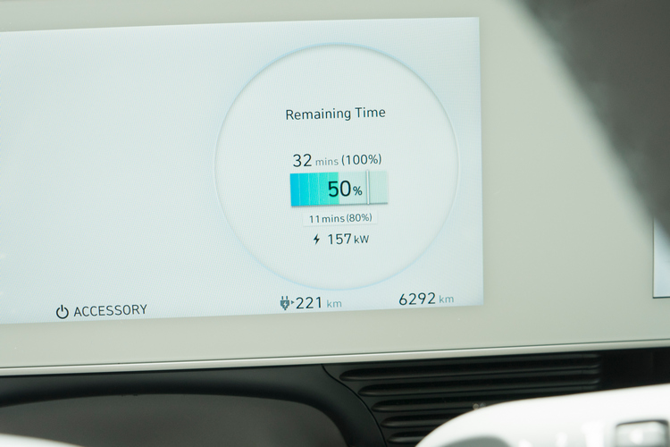 雙馬達四驅設定 在紳士與暴力間自由切換 從過去初代的IONIQ演進至現在的IONIQ 5,也改而採用HYUNDAI最新的E-GMP電動車全球模組化平台。集成化的動力系統將永磁同步馬達、逆變器與IDA整合式驅動系統整合在一起,讓動力系統體積縮小但效率更高。而在採用800V電裝系統架構之下,支援極速快充,理論上18分鐘即可補充跑超過350公里的電量(從10%充至80%)。這次試駕的IONIQ 5 EV500 Performance鋰電池容量為72.6kWh,飽電下最大續航力為496公里。前後軸各配置一具馬達,系統最大馬力為306hp、最大扭力為61.9kgm。
