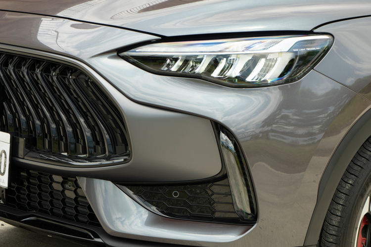 「類」瑪莎頭再加Trophy套件不少車迷第一眼看到HS那面積超大頗為大氣的水箱罩時,都不自禁地脫口而出一句:「瑪莎拉蒂」?說起來還真有幾分神似啊,除了面積寬大外,內部黑色柵條設計則有點類似LEXUS。兩側的進氣口與下方的氣壩同樣面積不小,不知道還以為是什麼大排氣量的性能車需要這麼大的散熱進氣量...。將日行燈整合於內的不規則形狀LED頭燈與車頭造型有搭,讓車頭的氣勢進一步被烘托出來。