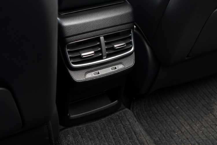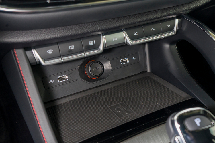 ▲中控台下方有手機無線充電格與兩個USB插孔。