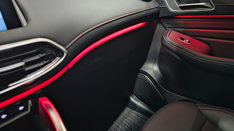 駕駛者前方的12.3吋數位儀錶,畫面的呈現有科技感,且像娛樂通訊、車輛狀態等中控台螢幕可操作的功能也可在此交互顯示。在播放音樂等時候也是雙螢幕聯動給予駕駛更多的互動感。在光線環境變化時螢幕也會自動調整背光,白天不會看不清,晚上則不會太亮而刺眼,反光程度也不大。