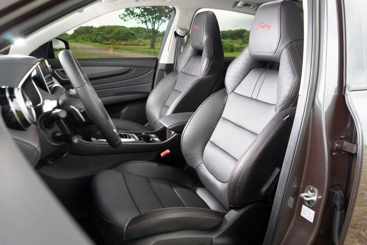 ▲雙前座一體式運動化皮椅包覆性佳並有電熱功能。