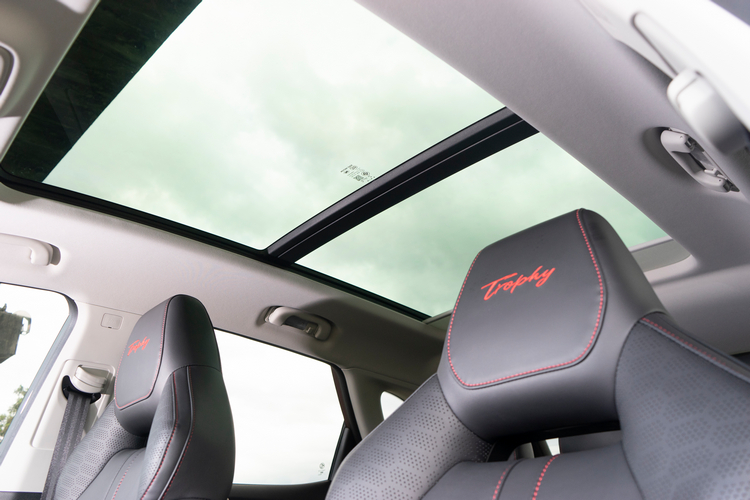 車上還標配了Trophy專屬套件,包含了燻黑處理的進氣壩、前保桿、後視鏡、鯊魚鰭天線、車頂行李架與運動化紅色卡鉗增加粗獷個性感。不過,在視覺上另一個讓筆者眼睛一亮之處,是這次的灰色試駕車在不同光線、角度下會明顯呈現不同顏色,而且不是局部若隱若現,是整車有時看起來會像咖啡色或更深的顏色,讓人覺得很有意思。