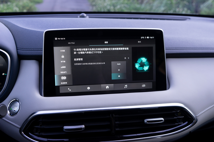 油電系統的運作,車上的12.3吋全數位儀錶與10.1吋中控台觸控螢幕上都有豐富的資訊顯示與功能畫面,資訊項目的詳細度更是在其他PHEV車款上少見。此外,PHEV車型內外裝配備上與1.5T的差異還包括鋁圈升級為19吋戰斧式樣、音響升級為含重低音共九隻喇叭的BOSE環繞音響、空氣淨化器、金屬踏板、雨滴感應式雨刷、自動防眩車內後視鏡等。不少國產休旅買家對於HS 1.5T不到百萬元售價所提供的豐富配備/好質感的CP值感到有興趣,不過如果你對動力有多一些的要求也喜歡純電行駛的零噪音污染,在百萬元門檻之上多付一些,其實MG HS依然會令你覺得值得。
