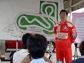 試車前先暖身![]() ▲賽車手盧政義對媒體朋友們「心戰喊話」照慣例,由賽車手盧政義現身說法,載著汽車編輯上場兜兩圈。Saxo暢快的加速勁道,一不小心就會錯過煞車點,接下來不是繞大弧圈就是推頭。聽得出來,盧政義在各彎道的處理上,對油門十分的溫柔,全油門機會並不多,煞車運用也非常柔順,甚至換檔動作也不求快,抓路線以求穩,善用跑道所有寬度,根本就不是筆者所想像的銳利入彎方式。
