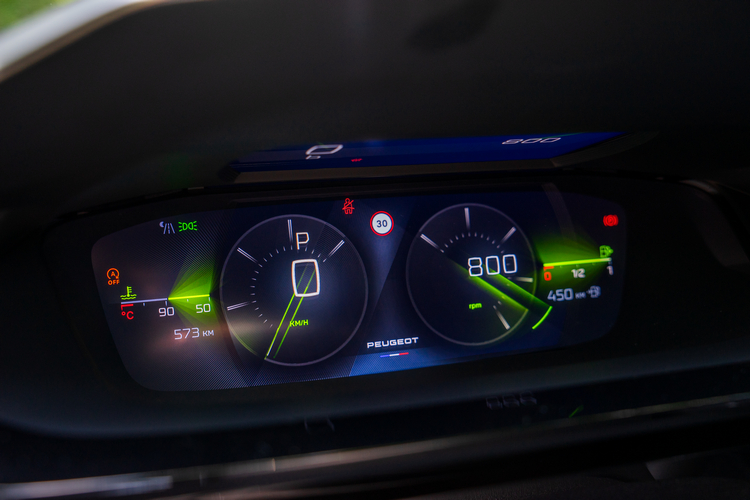 來到車內,408仍然是採用i-COCKPIT 3D駕駛導向操作介面思維並且不斷進化之最新的版本,所以你可以再次看到小盤徑方向盤、氣氛照明、鋼琴鍵盤式按鍵與3D QUARTZ立體投影式儀錶板等配備出現在車內。小盤徑皮革方向盤左側功能鈕可以控制定速、限速、與駕駛輔助控制,右側功能紐可控制音響與電話等功能。不過對一些車主來說方向盤容易擋到閱讀儀錶板視線的問題也依舊存在。