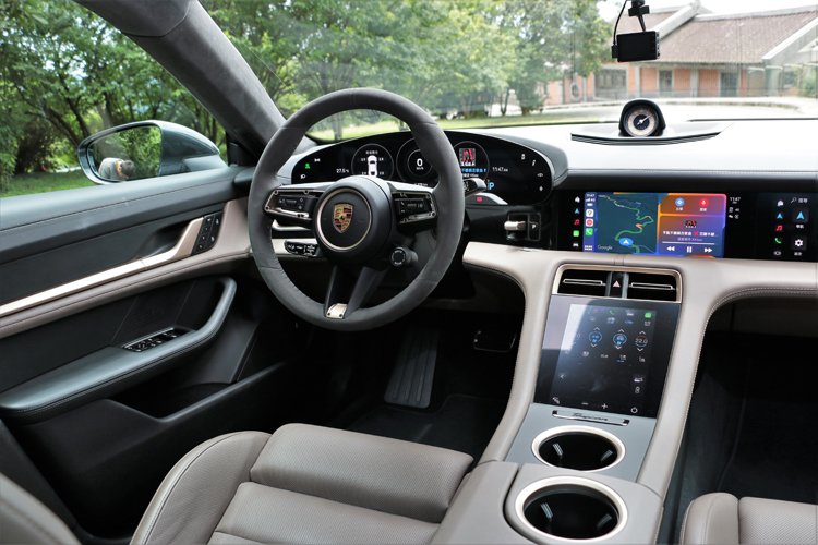 有著跑車性能的Taycan GTS電動車,外觀保留四門的便利性,無框窗設計車門結構,還是符合跑車該有的帥氣度。車身四周沒有誇張的空氣力學套件,套件本身已與車身鈑件融合,低調中卻得到跑車該有的風阻係數。試駕車外觀只選配了21吋Mission E Design鋁圈和白色塗層煞車卡鉗,總共花費約30萬元左右。 ![]() ▲標準配備Race-Tex麂皮材質與髮絲紋鋁合金飾板點綴,加重車內整體運動氛圍。![]() ▲Porsche近期經典的方向盤行車模式控制旋鈕,Taycan GTS提供五種模式。![]() ▲虛擬數位儀表板有多種畫面可切換,可依照駕駛習慣來更換顯示項目。![]() ▲乘客座前方的資訊娛樂顯示幕為選配項目,配備價格65,200元。![]() ▲車輛懸吊、車高或者大燈等控制按鍵,則是放置在儀表板左右兩側最就手處。![]() ▲排檔撥桿被放在儀表板旁邊,比起實體排檔桿少了點運動氣息。![]() ▲ Taycan眾多車型中,整體最均衡、最有樂趣的非Taycan GTS莫屬,台灣販售起標價格為605萬元起。