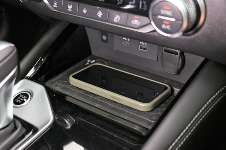 ▲排檔桿前方新增設無線充電座,最高可達15w的充電速度。