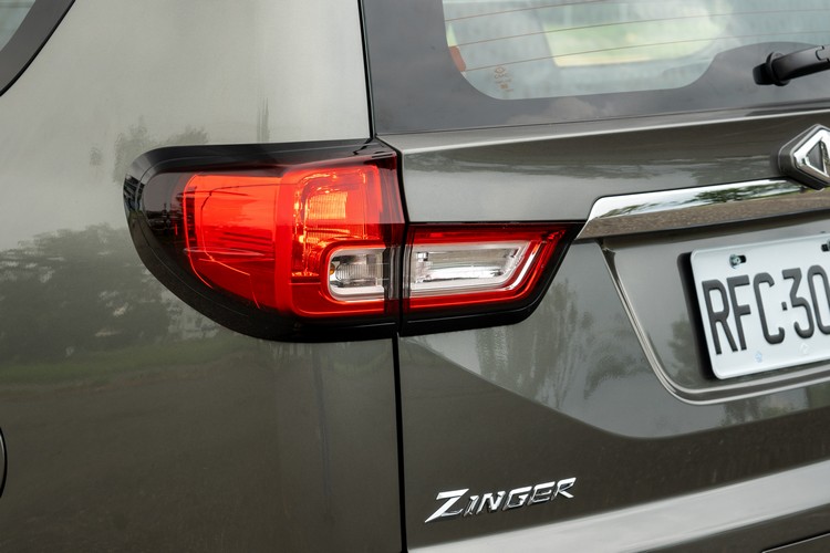 先從外觀來看,新Zinger將水箱罩的面積做大,這次試駕的五人座頂規車型也在其中央有鍍鉻飾條來配置廠徽,再搭配下方的氣壩。在視覺重心位置上會比過去舊Zinger更為上移,比較有SUV的樣貌,舊Zinger從前臉看起來則相對商車、廂型車的色彩較重。頭燈是橫向長形設計也很接近時下車款常見的細窄設計趨勢。頭燈組內部為鹵素燈搭配LED日行燈。