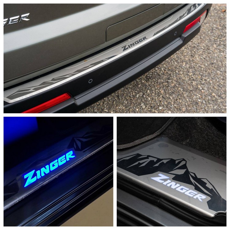 車側比較吸睛之處就是就是前後輪拱護板上方造型切線,瞬間在視覺上將前後輪拱「放大」還增加幾分肌肉感。這設計其實是延續自舊Zinger,也可以說是Zinger外觀一大特色。車尾的尾燈有相當凸出於車身的立體感,搭配黑色邊框飾條也更能吸引視線。尾門把手位置向下移至最下端在開門時施力會更方便,因為Zinger方正特尾門體積很大,把手位置不同確實有差。