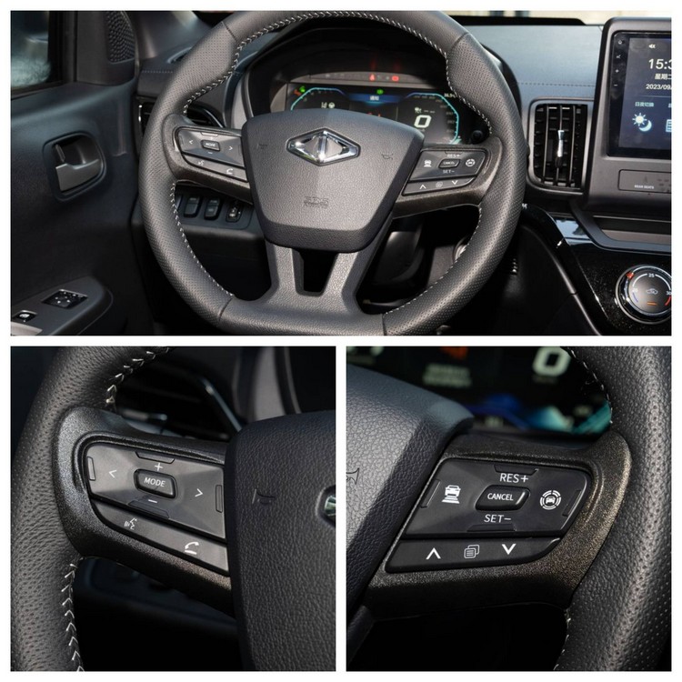 ▲平底的方向盤握輻有做大拇指易於握扣的形狀,還特別配置了方便啟閉ADAS功能的快捷組合鍵