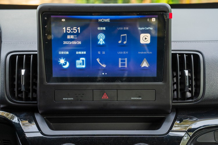 試駕的頂規車型在方向盤前方是配置10.25吋全數位儀錶,可在雙環與單環模式,雙環模式下中央為3.5吋資訊顯示,單環模式下則再多出一塊顯示資訊的區域。儀錶畫面整合了ADAS做動示意,圖像化呈現也很易懂。中控台配置Panasonic九吋觸控式多媒體影音主機,支援手機無線操作Apple CarPlay「與」Android Auto,透過語音聲控或方向盤按鈕來使用導航、電話、音樂等功能,跟得上現在的潮流。稍微可惜的是沒有倒車後方景象顯影功能,畢竟是日常開車經常用到的功能。