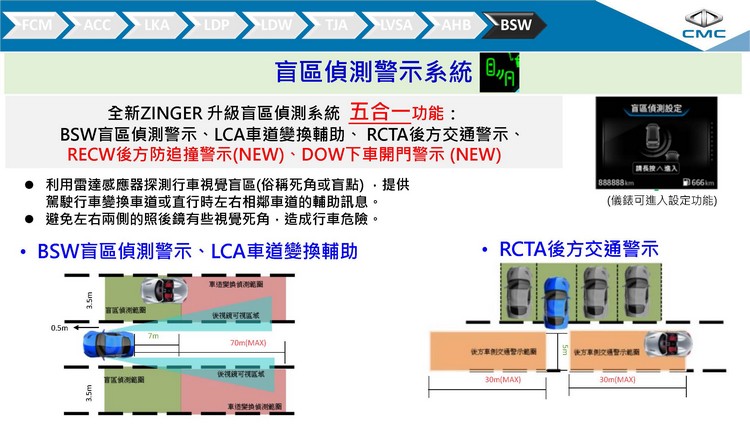 將動力、操控的行路表現拉至「SUV」的程度後,新Zinger要做一次就做到好,也將不少ADAS先進駕駛輔助系統導入。這次試駕的頂規車型滿配包括ACC全速域主動式車距控制定速巡航系統、FCM主動式智慧煞車輔助(含行人偵測)、LKA車道置中輔助、TJA交通壅塞輔助、LVSA前車駛離警示、AHB智慧型遠光燈、RECW後方追撞警示、LCA車道變換輔助、BSW盲區偵測警示、RCTA後方橫越車流警示、DOW下車開門提示等系統。其中便已包含Level 2半自動駕駛輔助(ACC+LKA),這在同級商用車上自然無法見到。