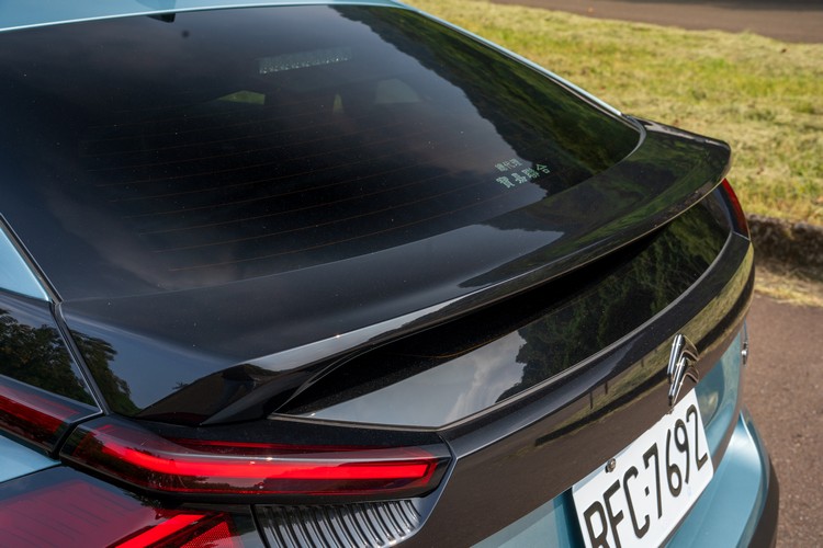 ▲長而斜的大面積擋風玻璃尾端以擾流尾翼強化空力表現也讓車尾看起來更有型