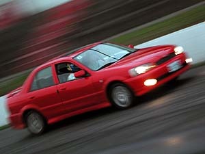 由福特六和主辦、國內頗富盛名的AAI車隊賽車手陳俊杉、施世偉、陸定文指導,媒體記者終於有緣在龍潭TIS體驗一下做個真實賽車手的樂趣。2001年原廠1.8自排房車賽拿下年度總冠軍的Tierra RS 1.8車款已經有超越同級車的操控水準,如今換上2.0的心臟,142匹的最大馬力(6000rpm)並非2.0房車中的翹楚,也沒有拉大與1.8房車之差距。但是長衝程活塞設計,高達19.6kgm的最大扭力輸出(4500rpm)就遠勝過所有國產1.8房車,甚至國產2.0自排房車中僅有同門FORD Metrostar的最大扭力勝過RS Tierra,NISSAN Cefiro 2.0、HOND Accord 2.0…等通通被比下去。而且RS Tierra車重僅1260㎏,比起其它2.0房車少了200㎏左右,加速能不快嗎?