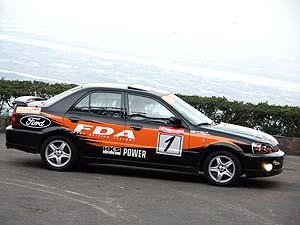 國內知名賽車手AAI車隊陳俊杉在2001年原廠房車賽第一站中駕駛一號黑色FORD Tierra RS 1.8,在未改裝底盤懸吊、沒更換排氣管、未拿下備胎、隨車工具的劣勢下,測時賽中就拿下PP,決賽不但拿下冠軍,最快單圈成績更超越了計時賽中的表現。第二站更換了避震器,單圈成績再向前邁進,年終順利拿下年度總冠軍。其賽車彩繪式樣正是此RS Tierra 2.0 Turbo,只是贊助商不同,在相同的底色條紋下多了「HKS」字樣。FORD之前推出車體彩繪服務,想讓自己的愛車擁有「賽車級」的優越感不是夢,連Focus WRC塗裝式樣都有喔。