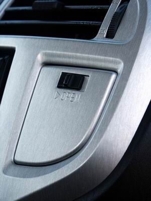 ▲.這是中控台旁的「置物合」,充分利用位置想法不錯,不過使用時過於「蠻橫」是打不開的,一定要「巧手」才行!所以這東西應該是女設計師想出來的,目的是為了方便「蓮花指」來使用…