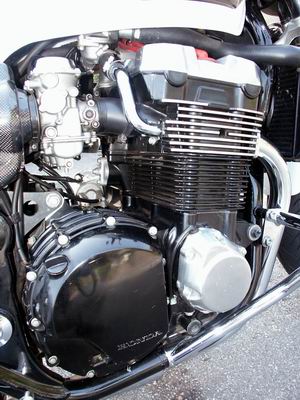 重機車引擎幾乎都是短衝程設計,四缸就是並列四喉化油器直噴設計,差別在節氣門口徑、轉速拉多高、整體匹配。CB1300引擎內部慣性阻力非常低,油門反應靈敏,轉速攀升迅速,有競技車型的味道,但是一收油轉速立即掉下來,所以換檔要快以免頓挫。排檔腳感非常精準,一檔為直齒輪設計,會發出「嘎嘎」吵雜聲,離合器為油壓帶動夠輕快,煞車性能更是沒話說,前大型雙碟配上兩組對向四活塞卡鉗那怕停不住,只怕鎖死。