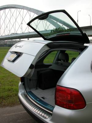 後門設計挺特別的,我想開這種車應該沒有人會在車後面塞一大堆東西吧,Cayenne車尾門採用兩段式開啟設計,第一段只開啟玻璃,第二段才是「開門」,特別的是若先打開玻璃之後再開車門,玻璃的角度會受到限制,這個設計主要是方便提取行李,不過設計這麼精細是很令人驚訝。