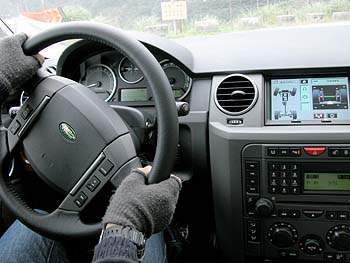 外型線條儉約洗鍊的車久看不厭,但是Discovery3內裝可就沒這麼儉約了,而是幾乎可以用隆重來形容車內的各項功能開關與配備。就功能性而言,Discovery3絕對是滿載,不信仔細瞧Discovery3中控台就相信筆者絕對沒有欺騙各位,Discovery3中控台原則上可以分成三個部份來講,最上端的部份是多功能螢幕,內建選項中可顯示行車及傳動系統等狀況,並且採用觸控操作模式,這個螢幕當然也支援衛星導航,只不過原廠目前正在努力導入中文化系統及國內地圖,預計將來是可以正常使用的。