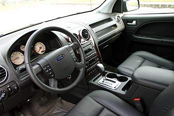 Freestyle內裝完全走向房車轎式的設計,而且打開車門後內裝景象也令人有點眼熟,假如車迷朋友曾經對FORD Metrostar的內裝略有印象,那麼Freestyle的內裝就是同樣的調調!柔軟厚實的座椅,支撐考究的造型,這種感覺確實讓人倍感熟悉,方向盤與儀錶板的形體與功能、中控台角度及面板上的功能設置,基本上與Metrostar相去不遠,除了副手座前多個跟有安靜作用的握把外,幾乎與Metrostar如出一轍。