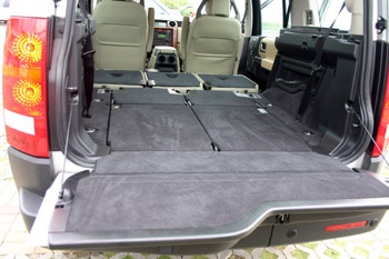 值得一提的是這輛車的空間利用率相當優秀,軸距2885mm比Range Rover還長5mm,加上車寬超過2公尺的關係,三排七人座椅的安排綽綽有餘,而且最後一排可讓兩位成人乘坐也不會感覺侷促,加上階梯式的增高,每位乘客都有非常不錯的視野,而後兩排座椅也都能完全放平,做為車床或載貨使用絕無問題。
