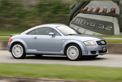 大排氣量V6引擎絕對是加速性能保證,從1.8T瞬間升級3.2 V6,看得出AUDI準備讓TT浴火重生的決心。此V6引擎之前曾用在VW Phaeton、Golf R32及將要上市的Passat,體積小,正好能塞入TT引擎室中,動力輸出特性並非高轉速取向,斷油轉速6500rpm,採用電子油門、高原式扭力輸出設定,全轉速區域扭力表現相當均衡,沒有怪癖性,3000rpm以下加速頗為順暢,但3000rpm以上時時都有蓄勢待發的猛烈衝勁,就算是國產車最速王NISSAN Teana 3.5也不是對手。TT 3.2實際加速測試成績為0-100㎞/h最快6.84秒,跑四趟成績都在7.1秒內(更驚人的是100-0㎞/h煞停距離才38公尺),與原廠數據相當,這才叫跑車!而且加速過程不需要特別技巧,不用預先拉高轉速,只要油門踩到底就對了,換句話說比純手排車更容易發揮最佳戰鬥力。攝影界有全自動的「傻瓜相機」,那TT加上DSG不就等於「傻瓜汽車」!當然是車聰明、人傻瓜囉!!