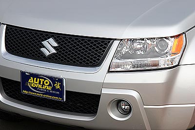 外型多處皆以俐落直線取代過去帶有圓潤的修邊手法,全黑塑膠交錯網狀水箱護罩缺乏國人最愛的大型鍍鉻飾板,卻反而流露出比鍍鉻更為精質的視覺效果,一氣呵成整體感倒有幾分性能車的魄力。清澈透明車頭燈照內,則是G.Vitara首次採用的遠近燈分離、以及使用投射大燈的設計,保桿上也鑲嵌著不可或缺的霧燈,燈組整體視覺有強烈濃厚日本車味道,唯一可惜的,是如此百萬身價風格時尚的名車卻無HID這項配備,否則夜間皎潔明亮的光線,也是吸引路人眼光的焦點。