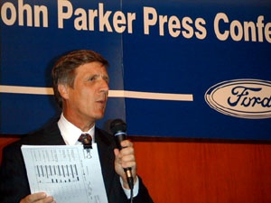 ![]() ▲福特六和總經理John Parker於1999/10/13記者會中,發表未來的經營計畫。九二一震災之後,福特六和汽車公司及六和集團已共同捐贈了新台幣兩千萬元,為真正幫助災區的顧客,福特六和也提供了非常具彈性的汽車貸款計畫、售後及零件優惠服務。此外,儘管大多數車商並不看好未來的汽車市場,福特六和並不改變未來五年內,投資新台幣七十億元於生產設備與設計成本的計畫。同時潘克強也在會中透露,第一輛由福特六和自行研發的新車「很快就會問世」。另外,為提升整體競爭力,自1998年7月起所實施、為期兩年的「協力廠商競爭力提升計畫」也漸漸展現成效,已有16家協力廠商實際參與「福特整體成本管理」專案。