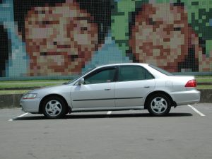 ●Accord:修長內斂典型日本車設計,日式品牌與美式風情結合範例![]() ▲HONDA Accord該車款於兩千年榮獲十五次十大名車(TEN BEST CAR)頭銜,JD.POWER台灣最佳房車表現獎的HONDA Accord,至1997年9月推出的車型,如今已經是第六代了,儘管面對的是強勁的NISSAN Cefiro,但是本田一派的個性化產品主張,加上不弱的空間表現、駕馭樂趣,仍能在2.0升市場中與NISSAN Cefiro雄踞二強之林,不過在2001年一位新的對手FORD Mondeo Metrostar入主後,類似的產品訴求和優勢已經面臨威脅,而產品週期也到了兩年一小改的時機,原廠終於選定在2.0戰火開啟前夕推出2001年小改款車種,外觀上2.0車款比照3.0升車型設計,修改了前水箱罩、白色頭燈下緣上白下紅尾燈組等,過去幾代Accord始終被視為時髦雅痞的理想座駕,原因不外乎其年輕化的外型、運動化品牌與豐富改裝空間,這也為Accord在台灣國產化三代後所奠定之基礎。