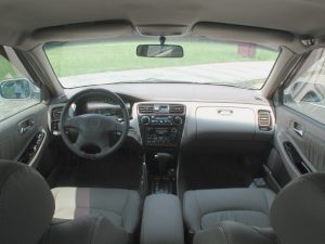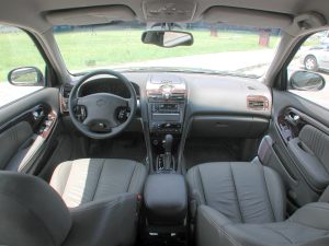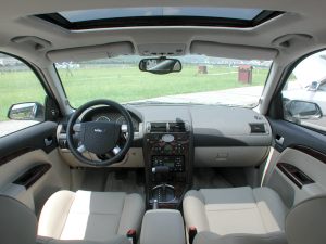 Mondeo Metrostar雖說是全新設計,但在內裝配置方面倒是沿襲Mondeo以往模式,以簡潔清晰為要,相對於其他兩車的琳瑯滿目,Mondeo Metrostar裡面配備陳列卻讓人一目了然、輕鬆上手,這一代用上了霧化鋁合金材質和真皮搭配的四幅方向盤,映入眼簾的是透著綠光的兩大兩小儀錶設計,儀錶內的兩液晶螢幕為行車電腦、里程表,駕駛者可以掌握車外溫度、油量、平均油耗和速度等資訊,獨缺了檔位顯示功能令人遺憾,而位於中控台上的是一只指針式時鐘,營造古典氣息卻扼殺了辨識度,空調系統用圓周型按鍵配置,開(AUTO)、關(OFF)裝置最為明顯,至於音響和上一代同樣採用2DIN設計,說穿了就是簡單好操作,不過以筆者主觀認定Mondeo Metrostar這樣的設計,應該偏向運動化訴求,單看那只殺氣十足的方向盤設計,和跑車上慣見的雙環鋁合金外框儀錶板,要跟我說這就是一輛豪華房車實在缺乏說服力,也因此搭配其中的米色內裝和核桃木飾板等配備,與Mondeo Metrostar搭起來卻變得突兀古怪。