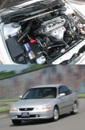 ●Accord![]() Accord威名如雷貫耳,在過去2.0戰國時代中擁有個性、品味兼具;並提供最佳駕駛樂趣的車輛,就是HONDA Accord。動力系統上使用的是附VTEC機構、Progress-DC的2.0直列四缸引擎,VTEC系統擁有在全速域狀態下,控制引擎汽門開啟時機的特色,如此可讓車輛在中、低到高速均可獲得完整的動力傳輸,該引擎最大馬力150hp/6000rpm,最大扭力為19.0kgm/5000rpm,印象中在高轉速條件裡Accord的加速相當銳利,這次小改款該車在機械上的變化,包括降低爆震的抑制系統、低噪音量與震動的系統控制,這其中可強化動力傳輸線之剛性、重心設計曲軸連接桿活塞、新感應系統,原廠表示在車輛靜塑性上有效改良的部分達九項,以創造絕佳之乘坐品質為要。 搭配VTEC引擎高轉速域動力輸出,雙A臂和五連桿懸吊結合是該車款另一特色,過去Accord操控口碑相當不錯,在同級2.0升房車中是少數操控與舒適兼具的優質車種,在這次集評中Accord也是唯一使用前雙A臂機構的車款,同時HONDA為Accord設計的高鋼性浮動式副車架,也是阻絕引擎、懸吊震動衝擊的設計,這些在操控上所下的叫lash;夫和設計,對上煥然一新的Metrostar,也是編輯部評比的焦點所在。