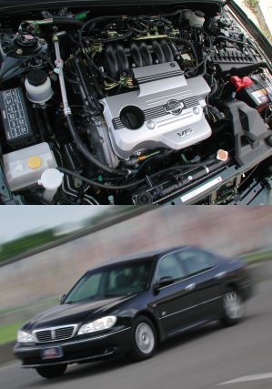 ●Cefiro![]() NISSAN Cefiro是集評對手中,唯一採用V型六缸引擎配置的車種,講究的是寧靜、安逸的運轉效率,該具VQ系列3.0引擎曾連續六年獲選為「十大最佳引擎」,以筆者當日VQ2.0DE車款試駕感覺雖不及3.0平順如絲的運轉品質,卻也有在寧靜度領先同級的絕對優勢。該引擎最大馬力150hp/6400rpm,最大扭力也有19.3kgm/4000rpm水準,不過面對Accord與Metrostar兩部運動性能不錯的車型,編輯部並不看好Cefiro在操控動力方面會有多搶眼的演出。 底盤設定上Cefiro採用偏舒適性打造,前輪為獨立麥花臣後輪為改良式QT多連桿,設計中心經過實際路面測試與計算,調整QT連桿支點讓過彎側傾重量分佈後軸以降低側傾,並保持輪胎與地面接觸最大面積,以求取大車身在彎道出入時的穩定性和乘客舒適性。