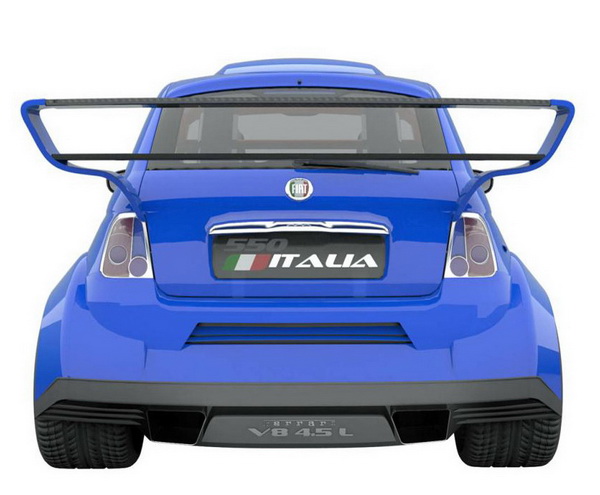 ![]() 提出這項大膽計畫的,是義大利一家名為Lazzarini Design Studio的設計公司,並且將這項特別車輛開發計畫名稱定為550 Italia。FIAT 500是前置引擎、前輪驅動的小車,這項計畫不但要將458 Italia的4.5升V8引擎裝在車體後方,且驅動方式也會改為後驅。