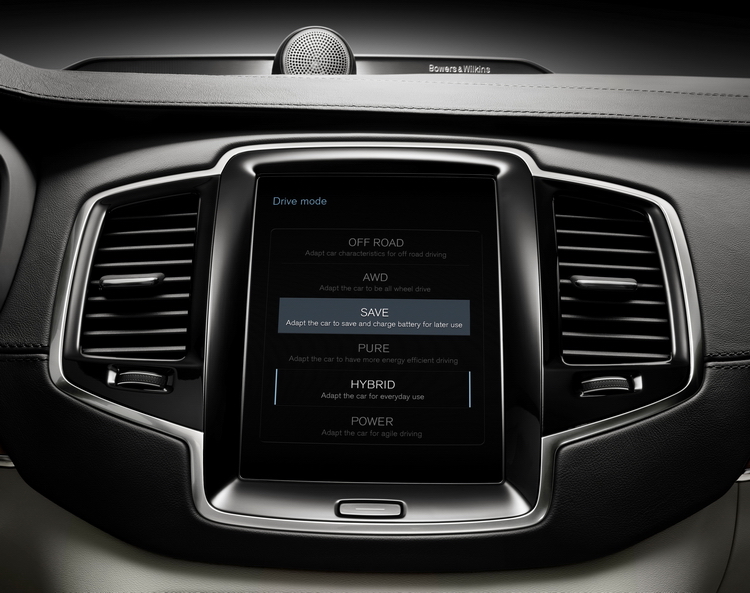 而動力旗艦車型則搭載掛上「T8 Twin Engine」稱呼的插電式混合動力系統,配置方式為2.0升Drive-E雙增壓(機械+渦輪)汽油引擎驅動前輪,而80hp馬力輸出的電動馬達則負責驅動後輪。只要按下按鈕即可切換為零排放的純電動模式,此時的續航里程約25英哩。當電量不夠時就會立即自動切換為混合動力模式,此時的綜效最大馬力輸出為400hp、最大扭力640Nm。二氧化碳排放量僅約60g/km,在SUV車壇來說以這樣的動力等級能有如此的低廢氣污染表現相當少見。