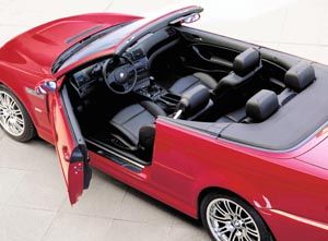 ![]() 相對於開拓M家族敞篷車化先河的上一代(E36)M3 Convertible,新一代的M3 Convertible顯得更為精緻。原廠公布新車的極速高達250km/h,0-100km/h加速成績為5.5秒,四檔的80-120km/h再加速為5.9秒,油耗則為8.26km/L。關於新車的價格,在德國當地BMW開出的牌價為11萬3千馬克(約合台幣165萬),新車預計將會在2001年春季以後,開始進入市場。