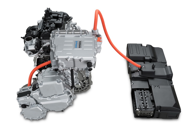e-POWER系統是日產以他們的第一款市售純電動驅動車「Leaf」所使用的電動系統為基礎所開發,整個動力系統中配置1198cc排氣量的「HR12DE」直列三缸汽油引擎(最大馬力79hp/5400rpm、最大扭力10.5kgm/3600-5200rpm),但與現今一般常見的市售混合動力(Hybrid)車不同,引擎只單純作為發電機使用,將所產生的電能提供給電動馬達來驅動車輛,也就是直列式(Series)的混合動力系統。所使用的電動馬達則依然流用來自Leaf的80kWh馬達。