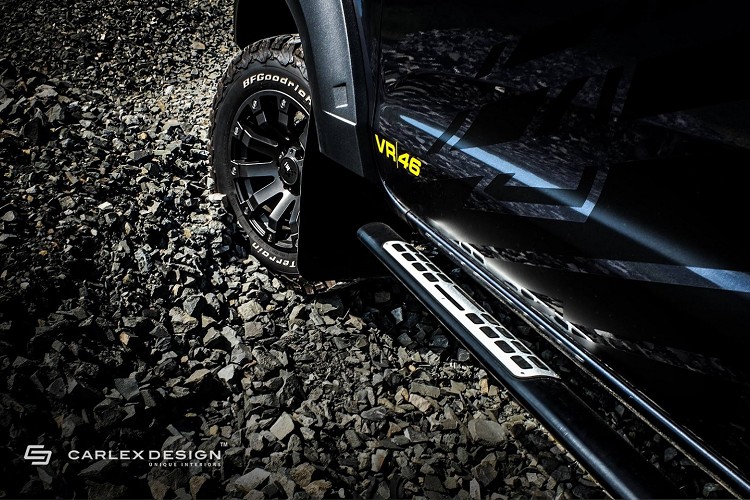 外觀部分,有專屬的前、中、後保桿與空力套件,讓原本粗獷的貨卡添加些運動感。前水箱護罩與車頂安裝LED探照燈,用意是在夜晚能有最佳照明,越野不分晝夜。懸吊換上改裝部品,加高車身高度,並且配備BFGoodrich越野性能胎,如虎添翼的在砂石路面上奔馳。