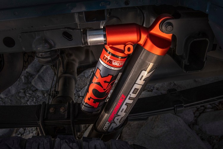 搭配地形管理系統,結合阻尼Live Valve懸掛技術,充分利用前13英吋與後13.9英吋的懸吊行程,輕鬆克服大石頭路面、砂石路面、泥濘路面等各種考驗。同時,在一般On Road柏油路上,依舊能給予龐大的F-150 Raptor平穩的駕駛性能,全要歸功給新開發的FOX避震系統。