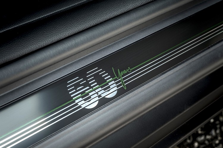 限量版MINI車身外觀以英國賽車綠為主要色調,引擎蓋上有兩條黑色標準線條,線條上印著60字樣,前臉安裝拉力式樣霧燈並搭配JCW車身包圍,突顯出MINI運動氛圍。除了賽車綠之外,雙色的車身塗裝搭配黑色,像是在後照鏡蓋、車頂等,都施以雙色鋼琴黑色烤漆處理。鋁圈為17吋規格,獨具一格的造型顯得六十週年限量車更有價值。