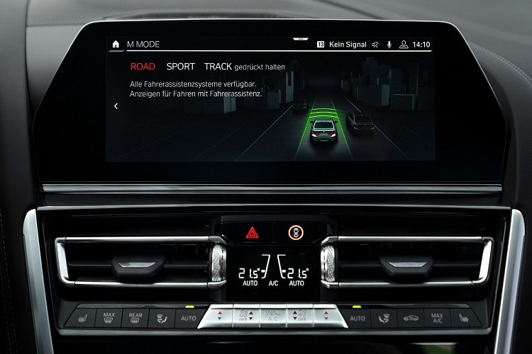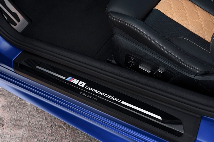 座艙以駕駛者為導向安排控制按鍵陳列,與現行M5有相同影子,配備有M專屬介面之12.3吋多重行車模式儀錶板、最新iDrive介面的10.25吋中央觸控螢幕、M專屬多功能真皮方向盤、全新造型M排檔桿,標準配備的M雙前座電動跑車座椅採Merino頂級真皮材質,既符合人體工學設計,且擁有絕佳的包覆性與支撐性,頭枕更鑲嵌會發光的「M8」字樣銘牌。方向盤上有M1與M2兩個快捷鍵,駕駛者透過自訂選單來改變車輛靈魂,方便駕駛隨時調整車輛模式。